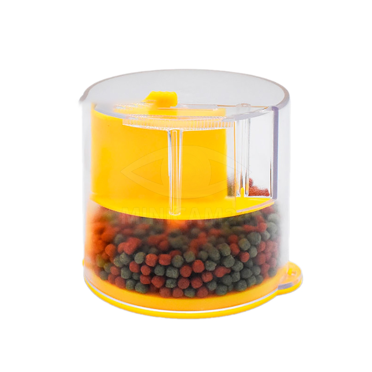 Fish Feeder Y-800 — компактный дозатор корма, который монтируется на стенку аквариума выше уровня воды. Крепится с помощью специального винтового зажима. Прибор кормит рыбок в запрограммированном режиме во время отсутствия хозяина. В контейнер можно загружать сухой корм: хлопья или гранулы. Крышка защищает пищу от влаги и пыли. Прозрачный резервуар медленно поворачивается, в установленное время порционно отправляет еду в аквариум. Время кормления можно настроить - 12 или 24 часа. Для питания используются две батарейки типа АА.