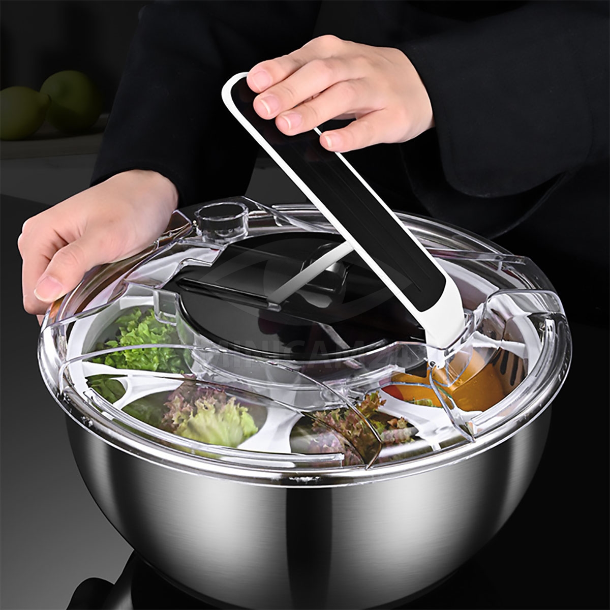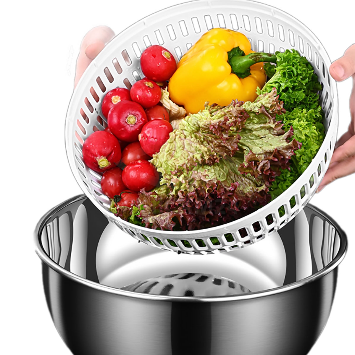 Изготовленная из нержавеющей стали, эта сушилка отличается прочностью и долговечностью, обеспечивая долгий срок службы и устойчивость к износу. С объемом чаши 3,5 литра, она позволяет одновременно обрабатывать большое количество продуктов, что делает её незаменимой помощницей на кухне.