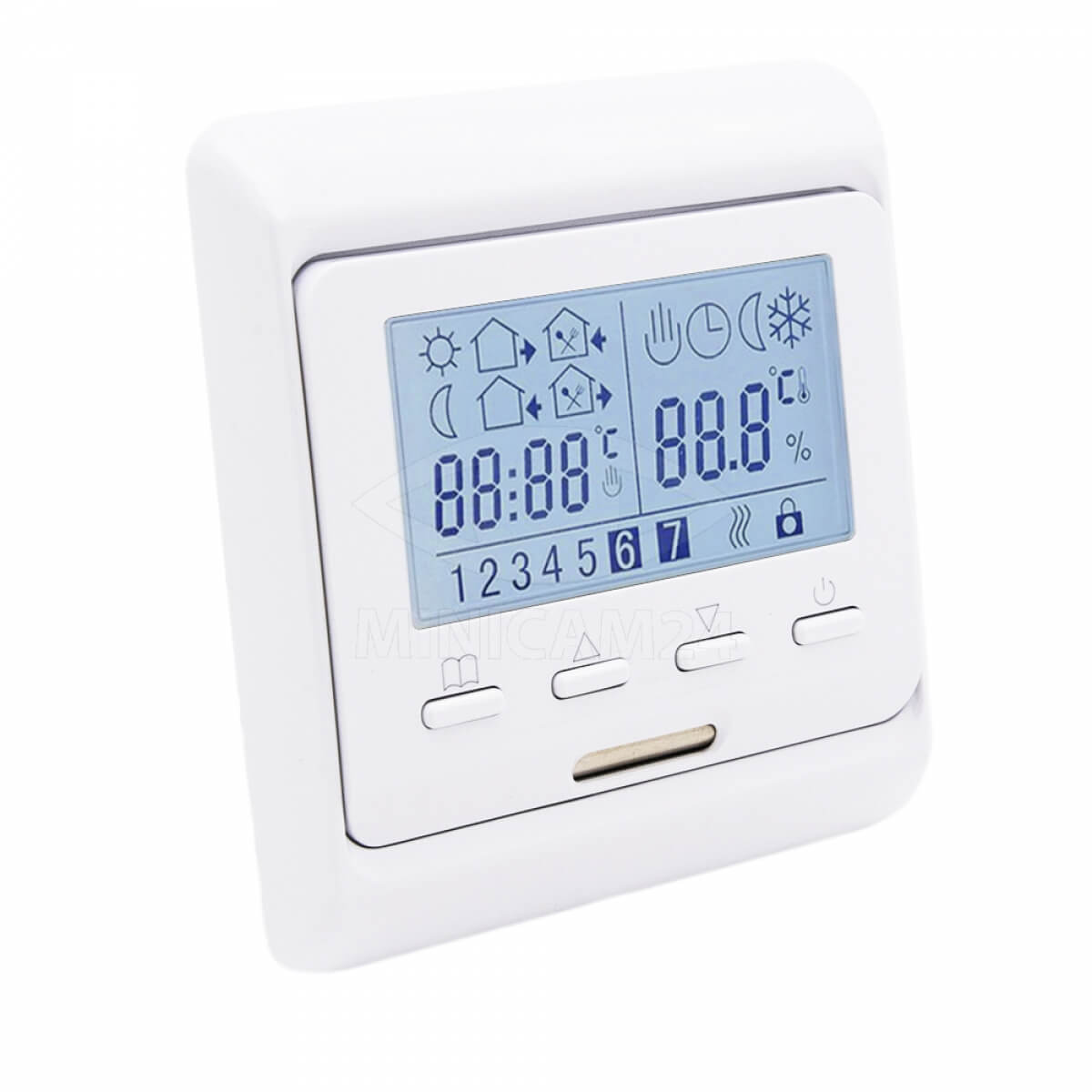 Программируемый цифровой терморегулятор E51 используется в нагревательных системах. Способен работать в трех режимах: ручном, когда пользователь дает команду, автоматическом для поддержания заданных температурных характеристик и программируемом. Терморегулятор оснащен удобным ЖК дисплеем с подсветкой и четырьмя кнопками для выставления настроек. Легко устанавливается, имеет широкий функционал. Благодаря датчику температуры устройство способно давать команды на включение и выключение отопительных систем. Активно используется в системах теплого пола.